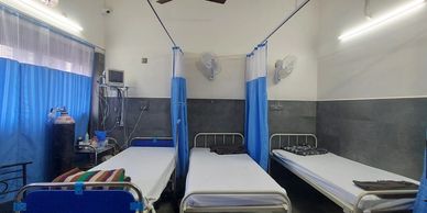 Our hospital features a clean and well-maintained AC ward equipped with all necessary facilities such as cardiac monitors and oxygen lines, ensuring comfortable and efficient patient care.